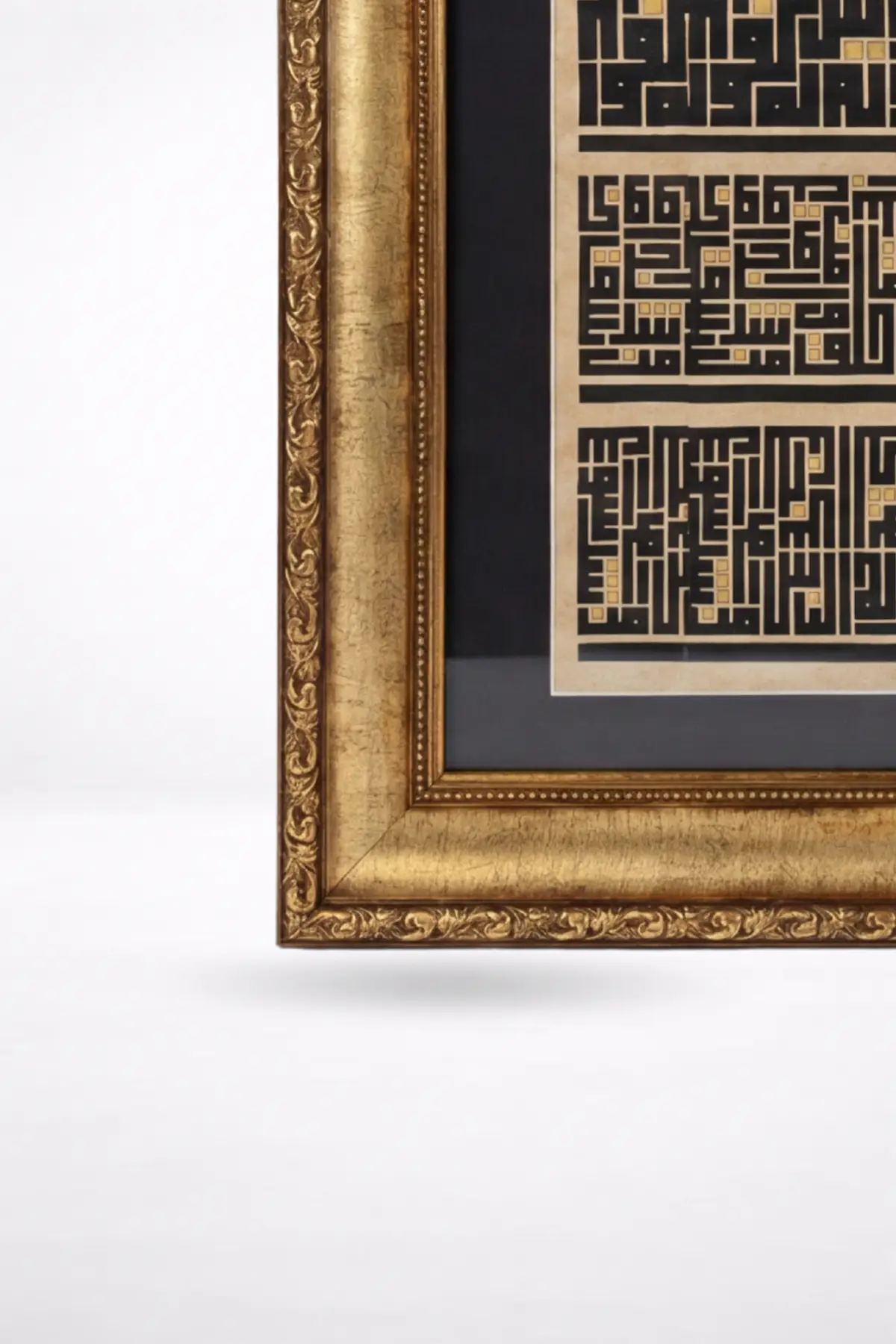 Özenle tasarlanmış klasik altın çerçevesi sayesinde salon, ofis, çalışma odası ve ibadet alanlarında dekoratif bir odak noktası oluşturur. Manevi değeri yüksek, anlamlı ve zamansız bir parça arayanlar için ideal bir tercihtir.