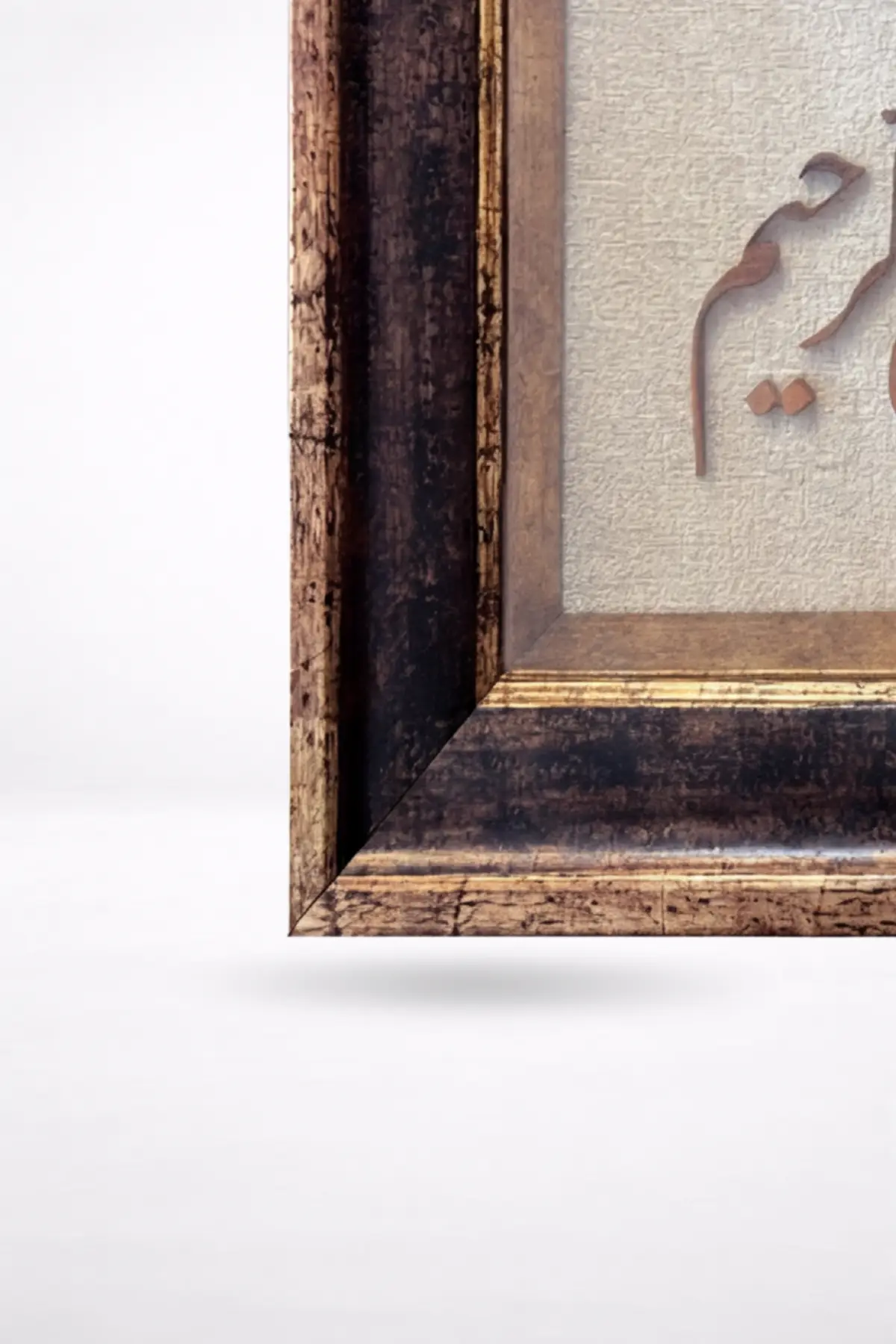 - Eskitme Antik Çerçeve: Eseri çevreleyen koyu ceviz tonlarındaki, kendinden dokulu ve iç kısmı bronz/altın detaylı çerçeve, tabloya "yaşanmışlık" ve asil bir ağırlık katar.