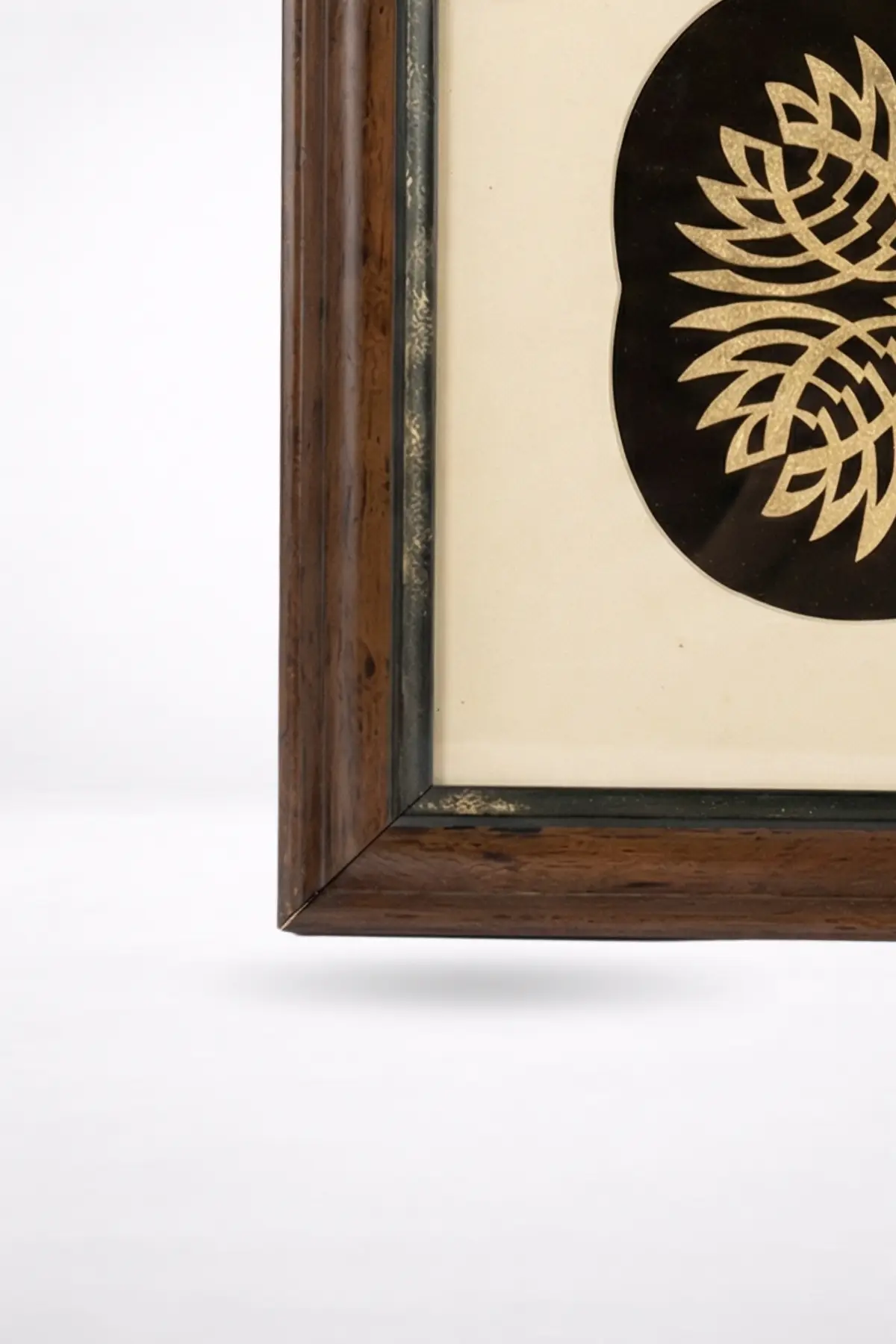 - Merkezi Motif: Siyah dairesel zemin üzerine işlenmiş altın varak görünümlü geometrik hat, merkezden dışa doğru yayılan bir güneşi andırır. Dört yöne açılan lale formları, kainattaki dengeyi ve sonsuz döngüyü (devr-i alem) simgeler.