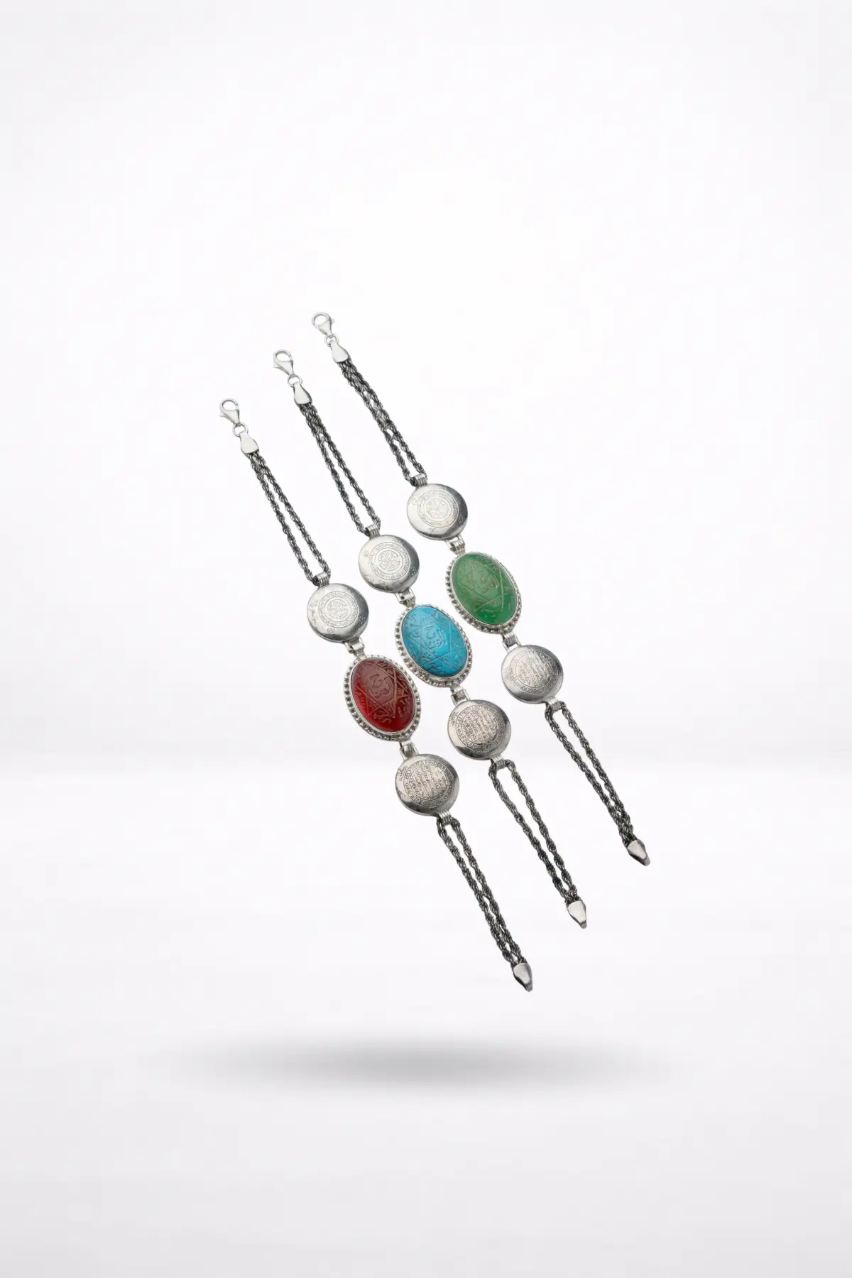 Bu set, manevi alemin üç büyük kutbunu üzerinizde taşımanız için "Tamamlanma" niyetiyle tasarlandı. Bir yanda Hz. Süleyman’ın mülke hükmeden mührü, diğer yanda darda kalanların sığınağı Hızır (a.s) ve cesaretin yıkılmaz kalesi Hz. Hamza (r.a)... Bu üçlü manevi ittifak, doğanın en güçlü şifa kaynaklarından Hakiki Kan Taşı (Heliotrope) ile mühürlendi.